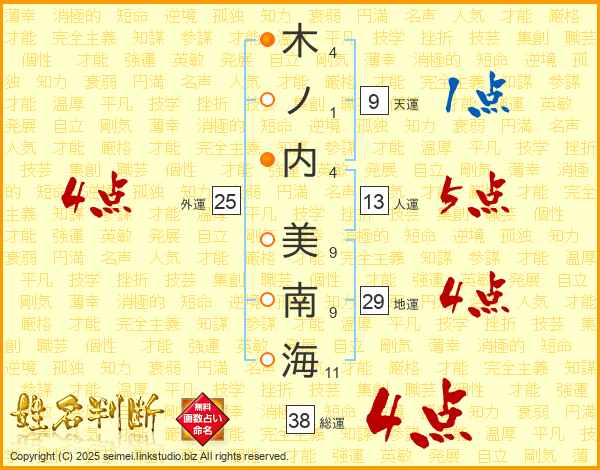 木ノ内美南海さんの総運は38画の4点!