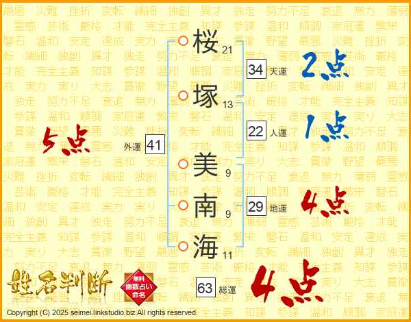 桜塚美南海さんの総運は63画の4点!