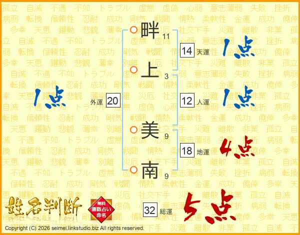 畔上美南さんの天運は14画の1点!