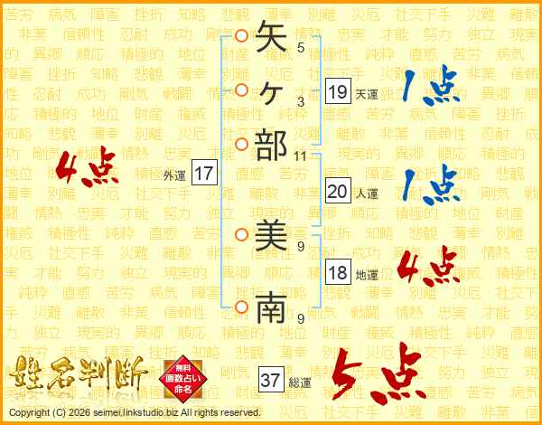 矢ヶ部美南さんの総運は37画の5点!