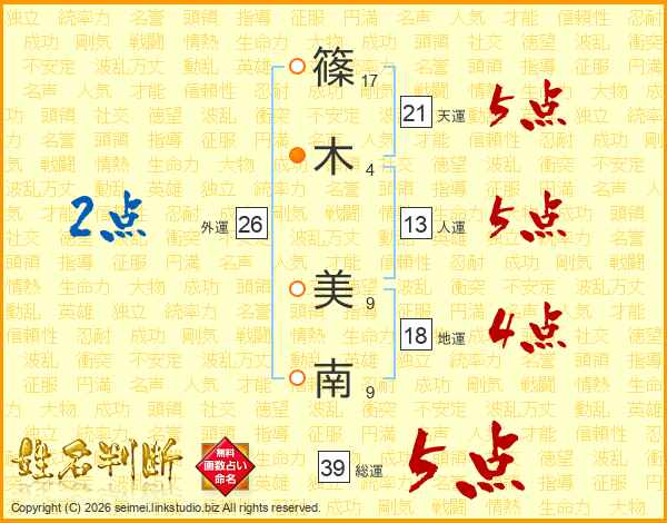 篠木美南さんの総運は39画の5点!