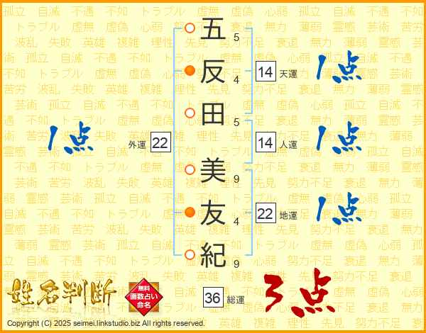 五反田美友紀さんの天運は14画の1点!