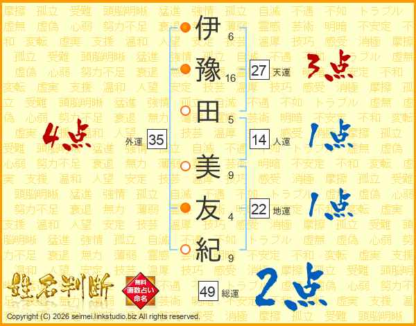 伊豫田美友紀さんの総運は49画の2点!