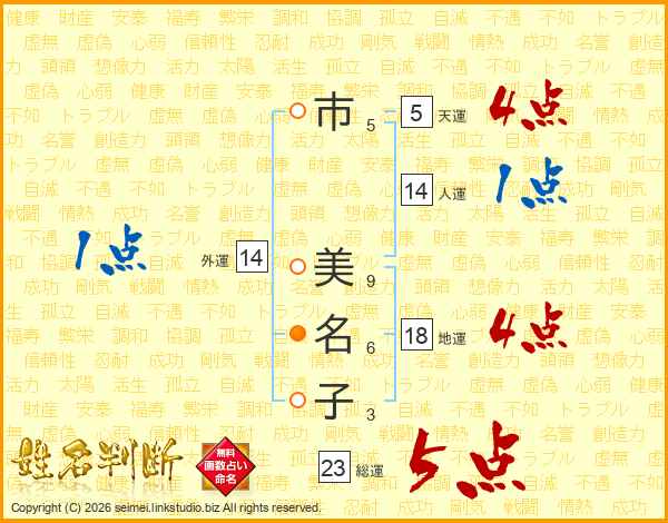 市(5画) 美(9画)名(6画)子(3画)