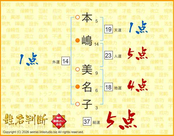 本嶋美名子さんの総運は37画の5点!