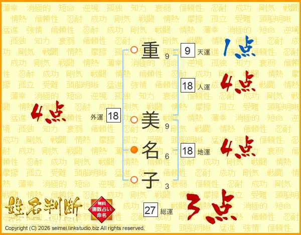重美名子さんの外運は18画の4点!
