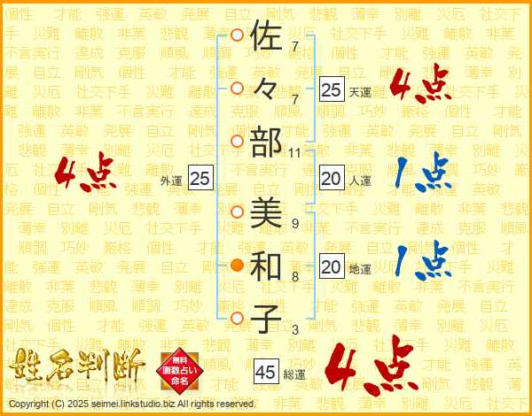 佐々部美和子さんの天運は25画の4点!