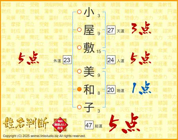 小屋敷美和子さんの総運は47画の5点!