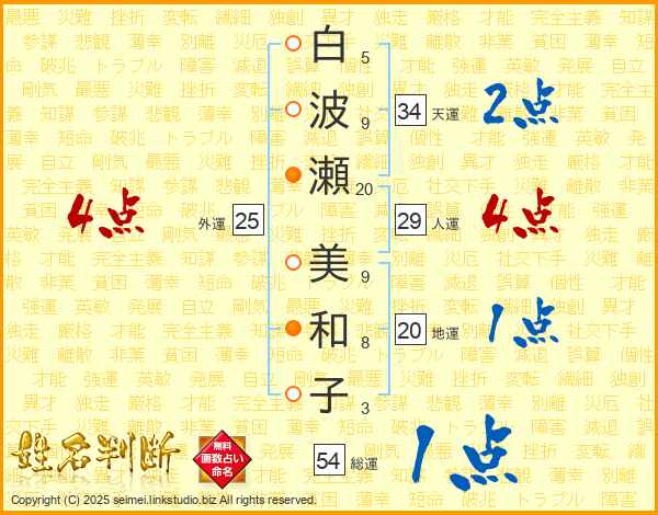 白(5画)波(9画)瀬(20画) 美(9画)和(8画)子(3画)