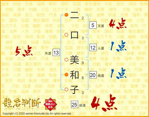 二(2画)口(3画) 美(9画)和(8画)子(3画)