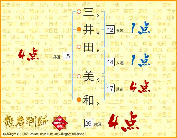 三(3画)井(4画)田(5画) 美(9画)和(8画)