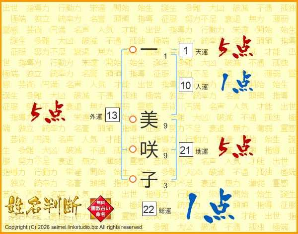 一美咲子さんの総運は22画の1点!