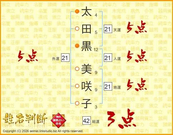 太田黒美咲子さんの天運は21画の5点!