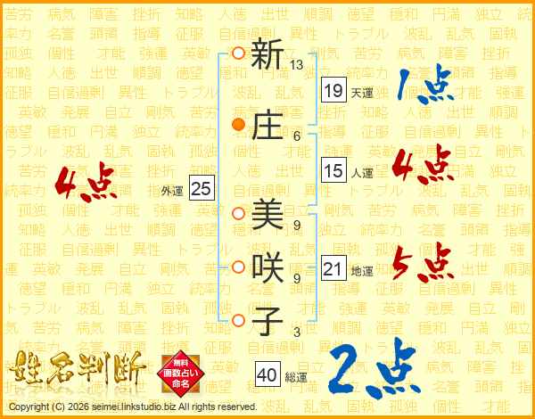 新庄美咲子さんの地運は21画の5点!