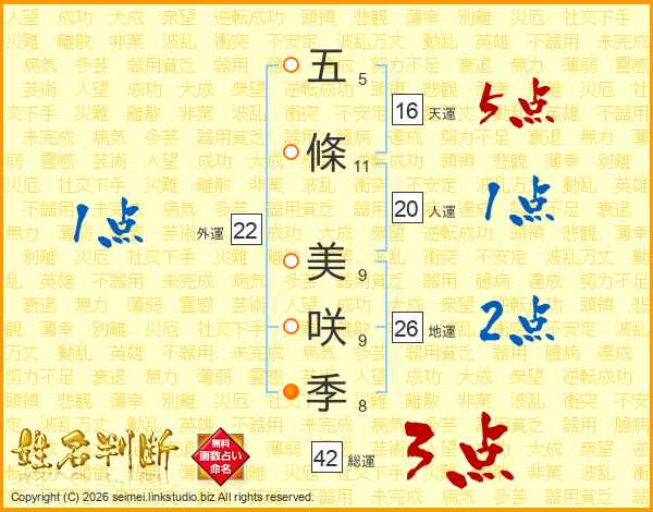 五條美咲季さんの総運は42画の3点!