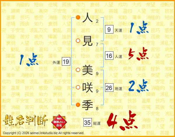 人見美咲季さんの総運は35画の4点!