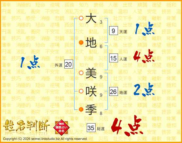 大地美咲季さんの総運は35画の4点!