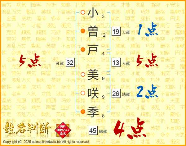 小曽戸美咲季さんの総運は45画の4点!