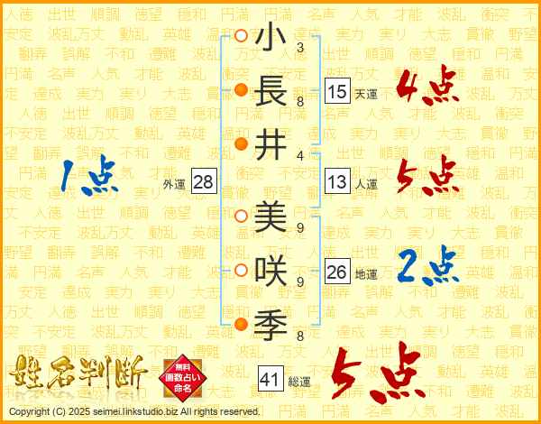 小長井美咲季さんの総運は41画の5点!