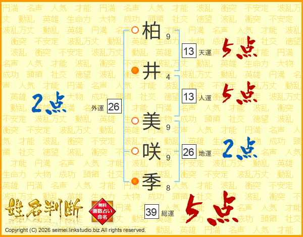 柏井美咲季さんの総運は39画の5点!