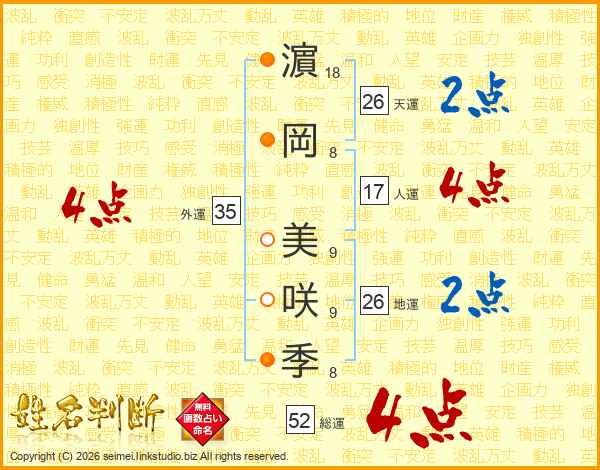 濵岡美咲季さんの天運は26画の2点!