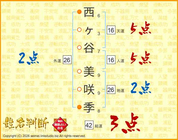 西ヶ谷美咲季さんの天運は16画の5点!