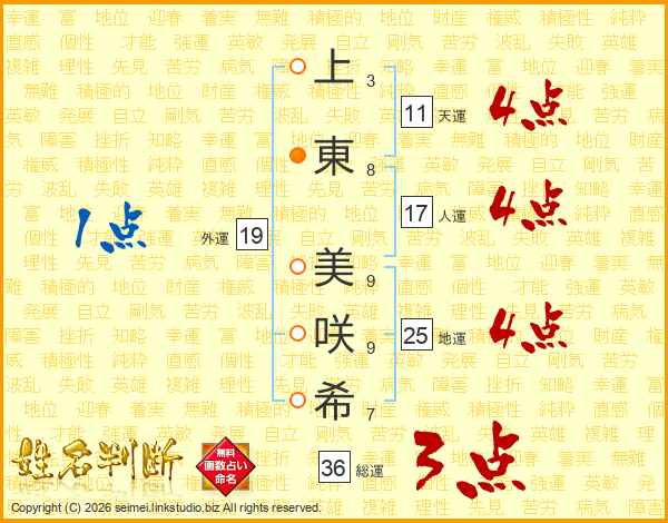 上東美咲希さんの地運は25画の4点!