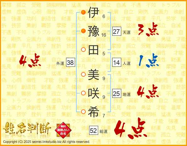伊豫田美咲希さんの外運は38画の4点!