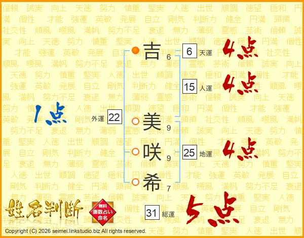 吉美咲希さんの地運は25画の4点!