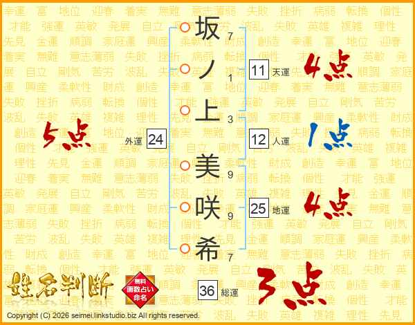 坂ノ上美咲希さんの地運は25画の4点!