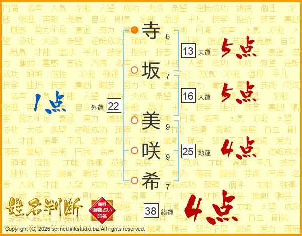 寺坂美咲希さんの総運は38画の4点!