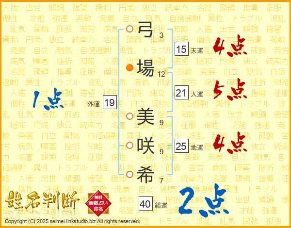 弓場美咲希さんの地運は25画の4点!