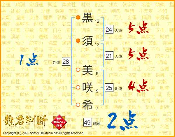 黒須美咲希さんの地運は25画の4点!