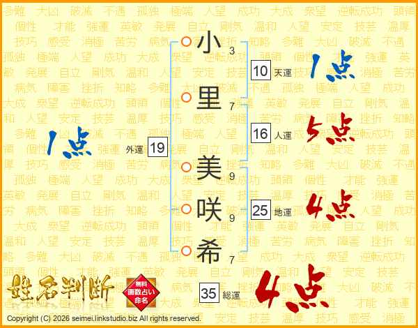 小里美咲希さんの地運は25画の4点!