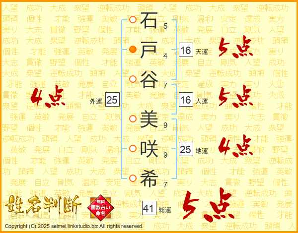 石戸谷美咲希さんの地運は25画の4点!