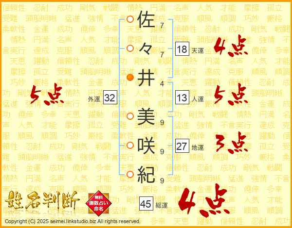 佐々井美咲紀さんの総運は45画の4点!
