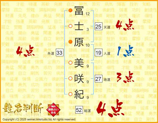 冨士原美咲紀さんの外運は33画の4点!