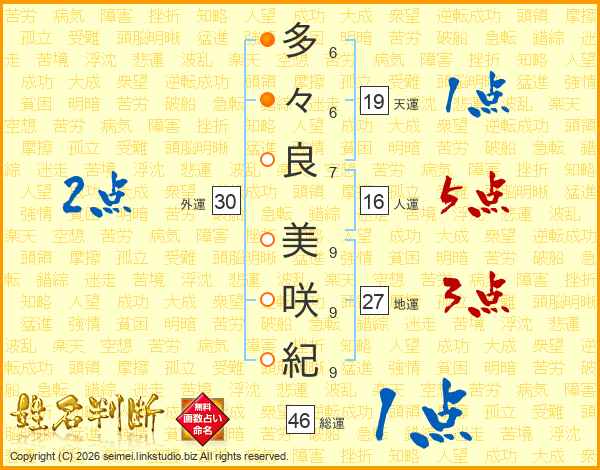 多々良美咲紀さんの総運は46画の1点!
