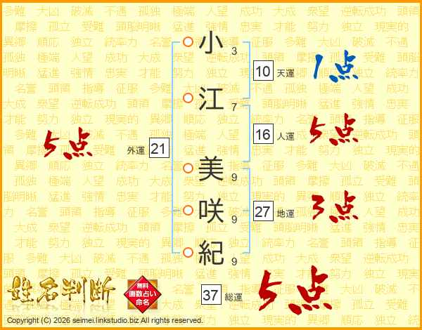 小江美咲紀さんの総運は37画の5点!