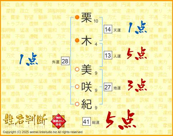 栗木美咲紀さんの総運は41画の5点!