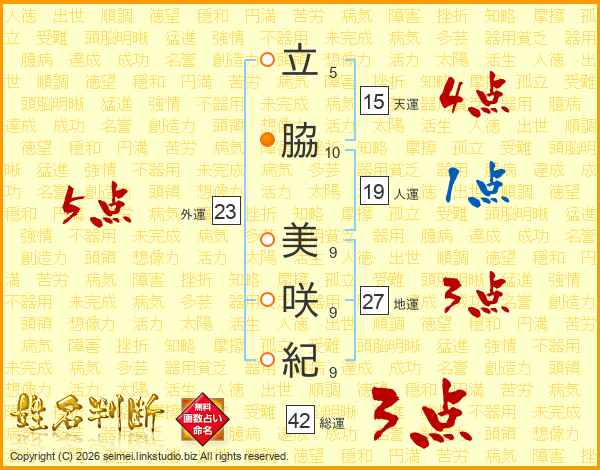 立(5画)脇(10画) 美(9画)咲(9画)紀(9画)