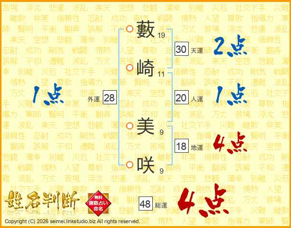 藪崎美咲さんの天運は30画の2点!