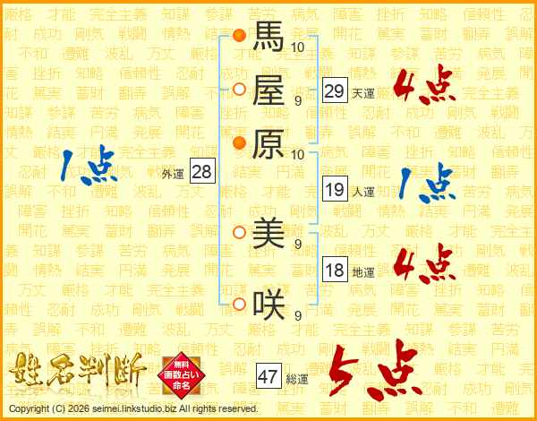 馬屋原美咲さんの総運は47画の5点!