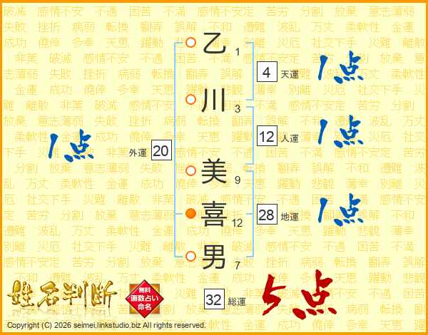乙川美喜男さんの総運は32画の5点!