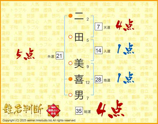 二田美喜男さんの総運は35画の4点!