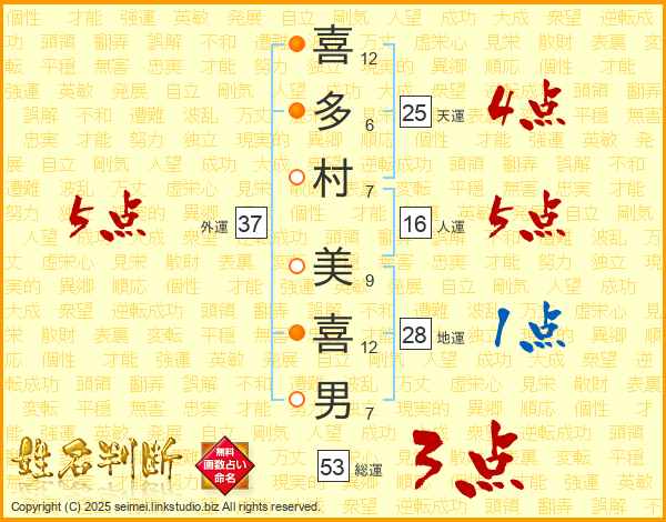 喜多村美喜男さんの天運は25画の4点!