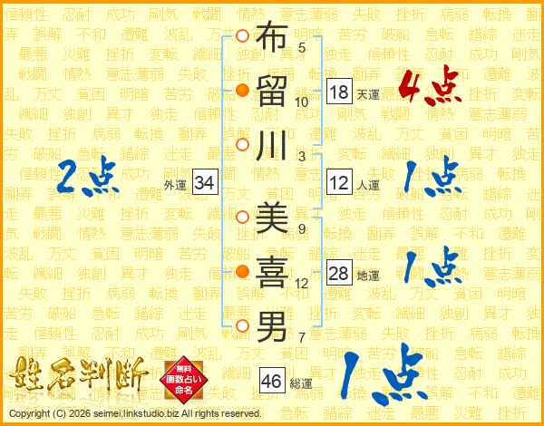 布留川美喜男さんの総運は46画の1点!
