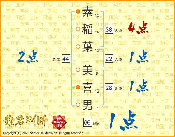 素稲葉美喜男さんの総運は66画の1点!