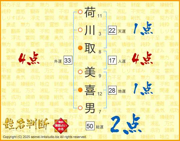 荷川取美喜男さんの天運は22画の1点!