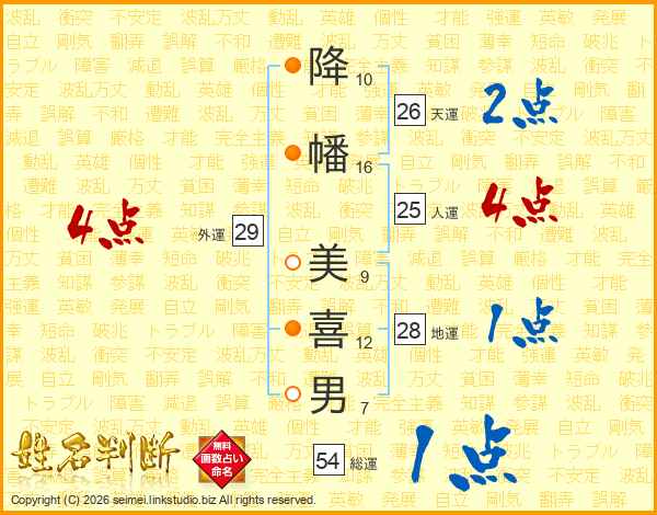 降幡美喜男さんの人運は25画の4点!